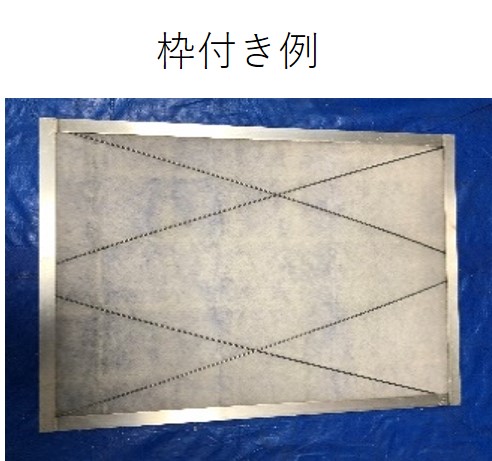 | 実績用途例 | ・外調機用 ・内調機用 ・エアーカーテン用 ・乾燥炉用 ・局所排気用 ・送風機用 ・天井フィルター用 ・塗装ブース用 ・クリーンブース用 ・排気ダクト用 ・脱臭装置用 ・ドラフトチャンバー用 ・空気調和機用 ・フライヤー用 ・その他 ※上記以外のあらゆる用途の空調用吸気フィルターも新品同様に再生可能 |